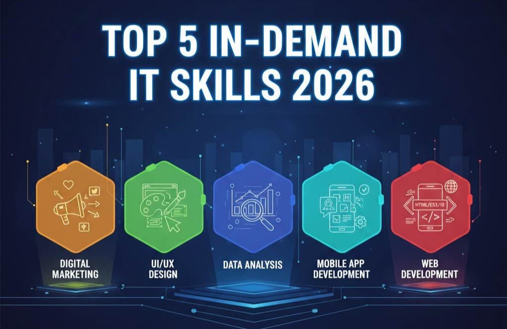 As we look toward 2026, mastering these top IT skills will be crucial for your career success. Focus on areas like digital marketing, data analysis, UI/UX design, mobile app development, and web development. Acquire these in-demand IT skills and position yourself for a rewarding future in the tech world. These in-demand skills are future proof.